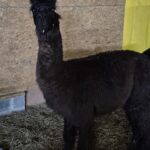 Valentier Shenanigan is a high-luster, pitch-black suri female with abundant, well-defined curls and an eye-catching presence. Her sire, MSF Fame and Fortune, is a striking black and white suri out of the notable pedigrees of LAMS Nutcracker and GC’s Chock Full ’O Nuts, bringing both color contrast and proven genetics. Shenanigan’s dam, Elevenses Regan, adds strong Peruvian influence through Killian Red and Peruvian Keno, further strengthening her pedigree with depth and consistency. Shenanigan had her first cria in the fall of 2025 and proved to be an excellent first-time mother, producing plenty of milk and attentive care. Her male cria, sired by Sandstone, was pitch black and aptly named Blackstone. She is currently rebred to GNLC Cococola for a spring 2026 cria. As both Shenanigan and Cococola are key components of our Black and White Breeding Program, we are hopeful for a striking black and white cria that continues this focused and exciting line.