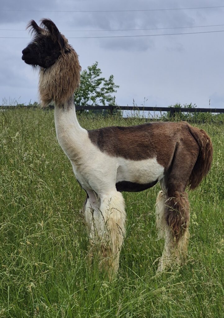 4L&M Raphael’s Baba Lue is an exceptional tri-colored medium wool paint female carrying the highly sought-after and famous “Baba” lines—bloodlines that have consistently proven their value by commanding exceptional prices at auction. Baba Lue’s sire, Nastaza’s Raphael, brings together strong Peruvian and Argentine bloodlines, which are clearly expressed in Baba Lue’s impressive characteristics: substantial bone, a stately frame, and overall presence that immediately stands out. Her dam, Ollendick Farms Baba Sue, anchors Baba Lue firmly in the renowned Baba lineage, tracing back to the influential Sijama lines and powerhouse herdsires GC’s Inca Legend and GNLC Caspian. This combination blends proven genetics, structural correctness, and long-term breeding value. With her pedigree, conformation, and eye-catching color, Baba Lue represents exactly what serious breeding programs strive for. We eagerly anticipate what she will produce when bred to the herdsires of Walnut Ridge Farm—the future looks very bright for this remarkable female.