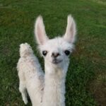 WRLF Fame’s Sarah is a gorgeous, solid white suri female with a personality to match her looks. Arguably the sweetest llama on the farm, she’s always the first to greet visitors—curious, gentle, and endlessly charming. Beyond her friendly demeanor, Sarah boasts some of the most diverse bloodlines in the herd. Her sire, MSF Fame and Fortune, is a proven champion with multiple Grand Championships culminating in a National Championship. He is a LAMS Nutcracker son, tracing back to the influential GC Chock Full ’O Nuts line—known for consistency, presence, and show-ring success. On the dam side, Starina contributes valuable outlying genetics through Peruvian Keno, Fivestarr, and Whist, adding depth and diversity to Sarah’s pedigree. Sarah will be shown this year, where her elegance and calm confidence are expected to shine. She is also slated to transition into the breeding program when age appropriate, where her temperament and genetics should make her an exceptional addition for the future.