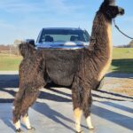 WRLF Wolfgang’s Wednesday is the kind of female that makes you stop and look twice. Strikingly marked in black and white, she boasts a crisp white face and a classic tuxedo pattern that perfectly complements her silky fiber and refined presence. Wednesday is eye-catching on the outside—and even more impressive on paper. She represents a double dose of the highly respected Pearson Pond Ranch (PPR) bloodlines. Her sire, PPR Wolfgang, has been our most consistent herdsire, reliably producing correct, colorful, well-balanced crias with strong conformation and style. His pedigree is a powerful blend of influential Chilean and Bolivian genetics, featuring Chilean San Juan, PPR Black Orchid, Purple Tiger, Santiki, and Aloha Night Sprite—names known for quality, color, and longevity. Wednesday’s dam, PPR Wyllow, is a refined silver female sired by Don Diego and a granddaughter of the renowned Argentine Don Zunca. With generations of unique black and silver coloration genetics embedded deep in her pedigree, she offers both standout visual appeal and serious breeding value. Whether you’re looking to elevate a show string or strengthen a forward-thinking breeding program, WRLF Wolfgang’s Wednesday is the kind of female that moves a herd confidently into the future.